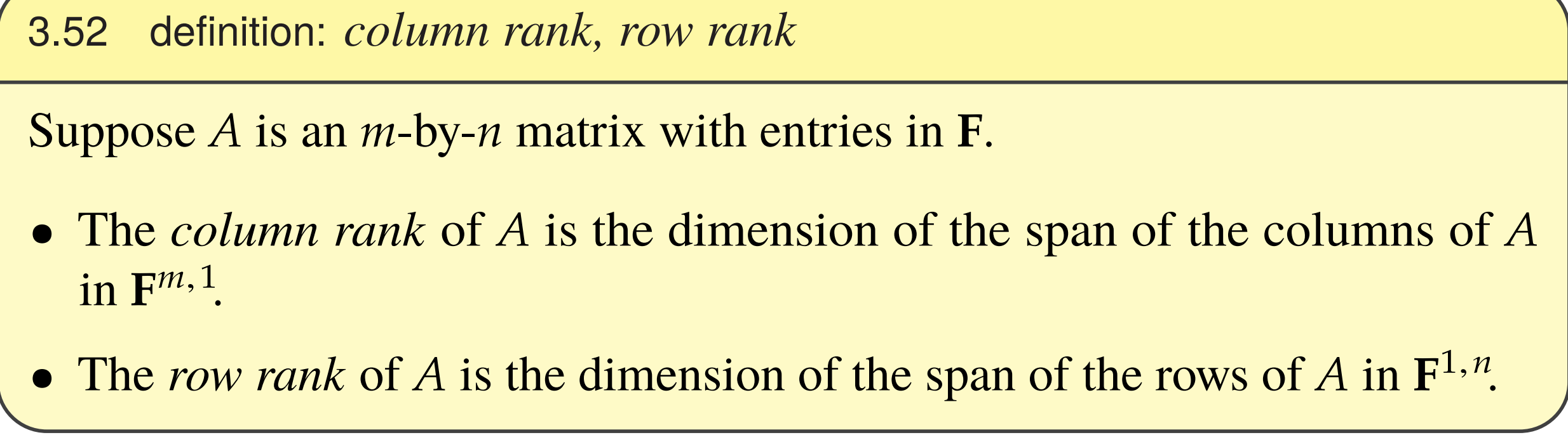 For all matrices column rank is the same as row rank. Complete the proofs to find out why todo (last 2 proofs) before def