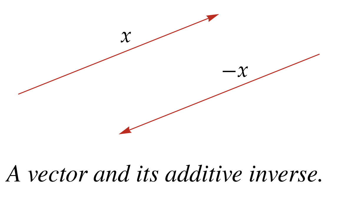 Likewise, additive inverses of vectors also make sense as they just have the opposite coordinates leading back to the origin: